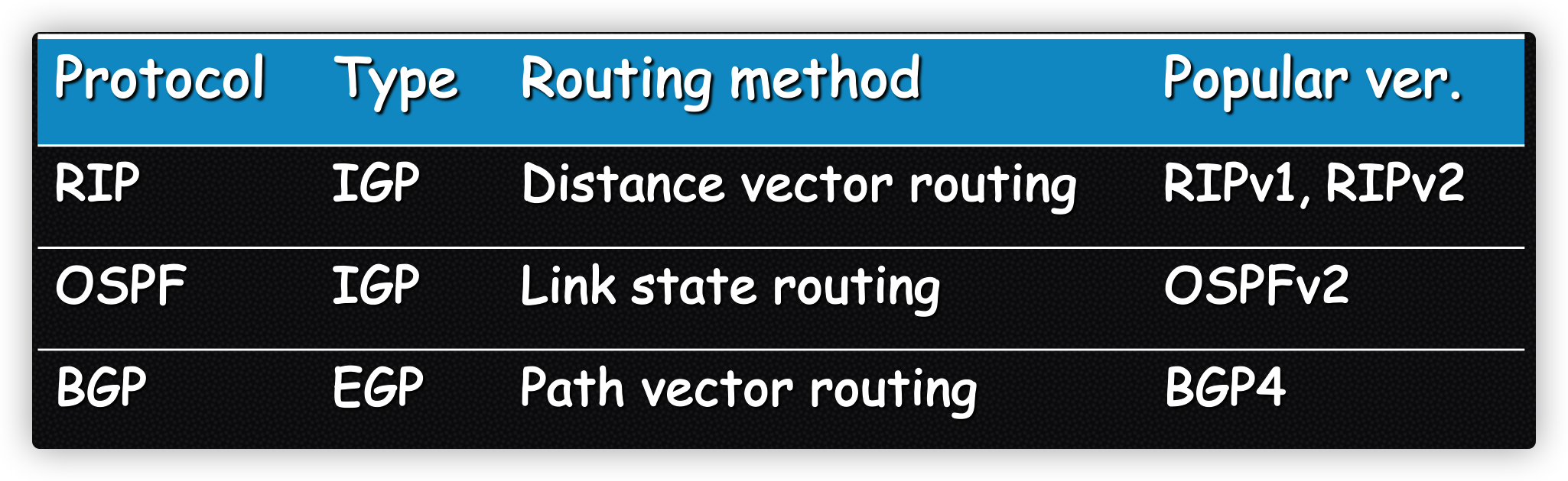 注意,路由选路不唯一,且路由表大小和网络数有关,与网络内含有主机个数无关。仅最后一个网络知道目标主机是否存在。
