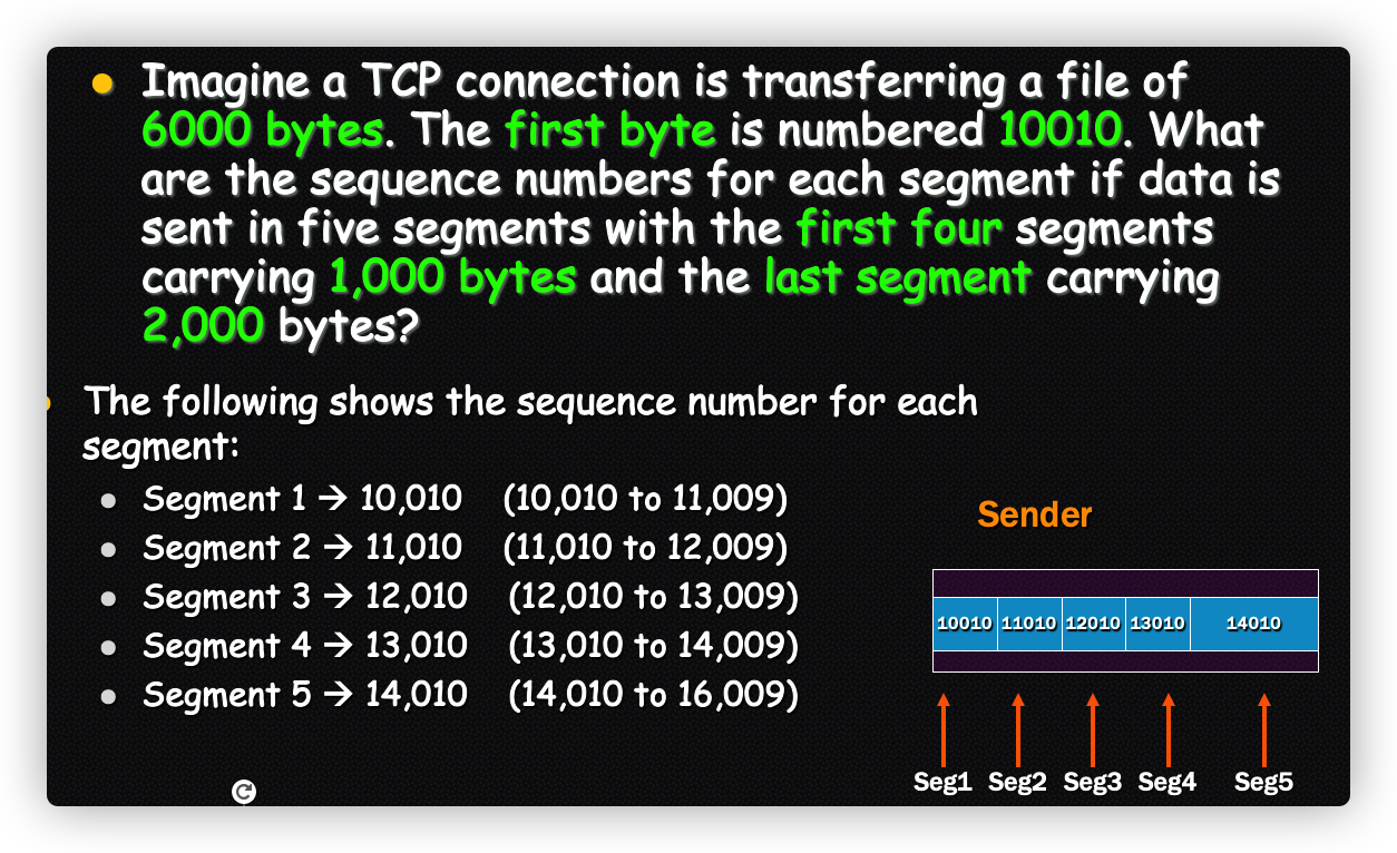 seq = x ,发送数据长度为L ,则已发送(若成功)的数据段为 x 到 x+L-1,TCP 返回确认号为 x + L