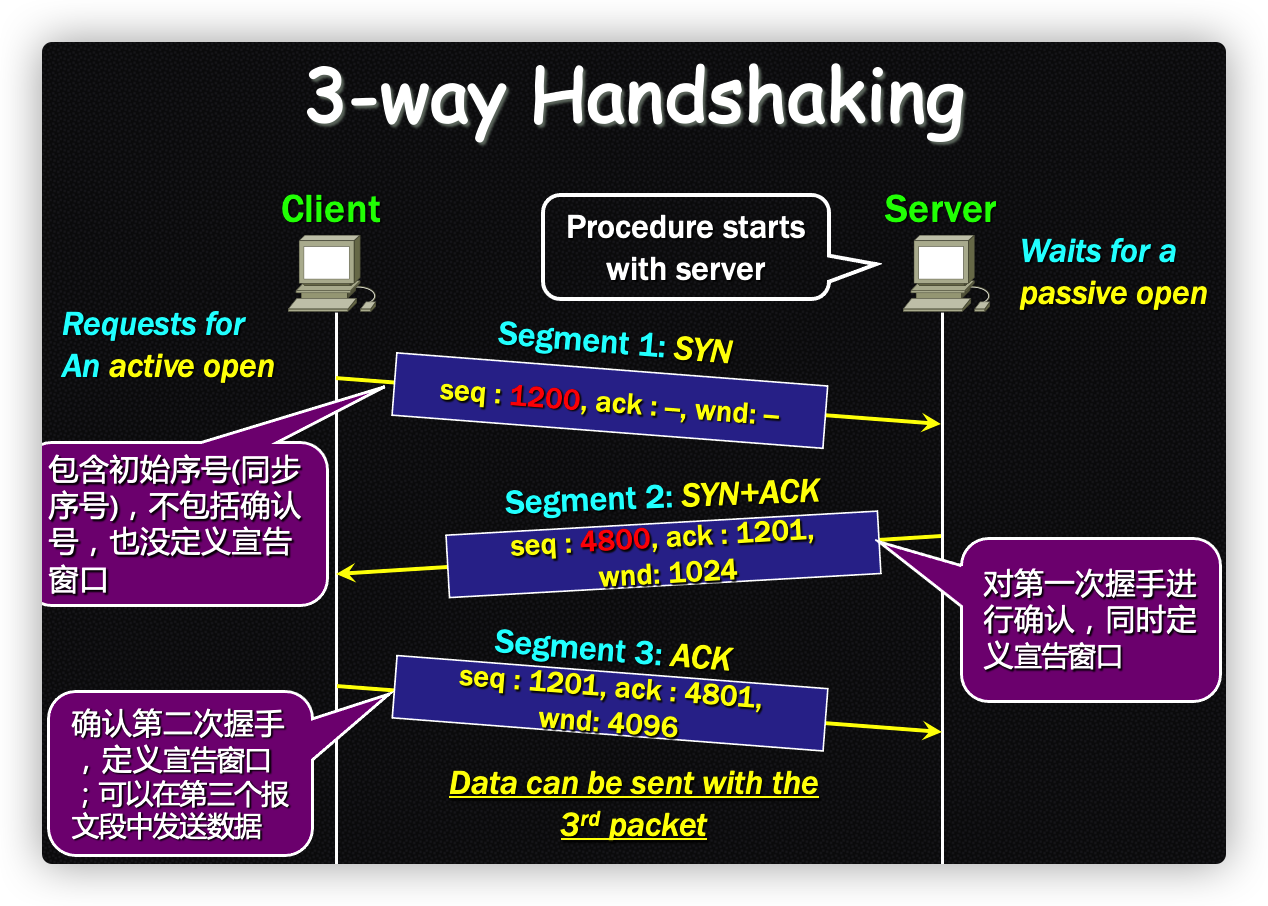 • 三次握手